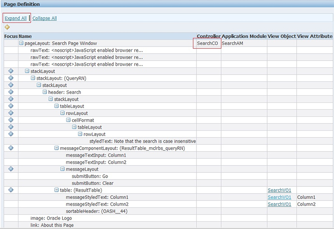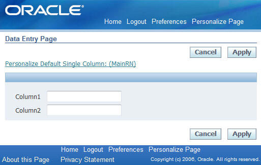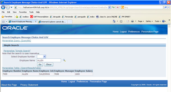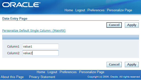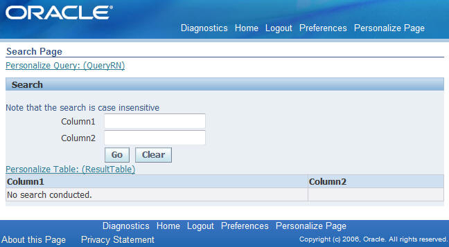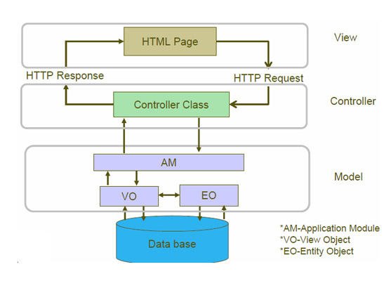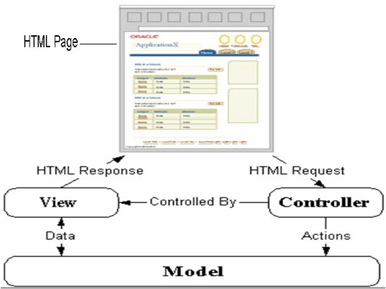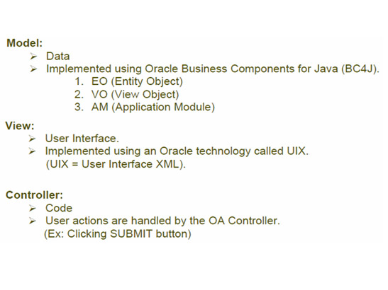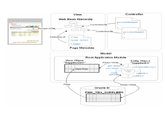 The MVC architecture, being the industry standard for networked applications is employed in the Oracle Applications Framework and various