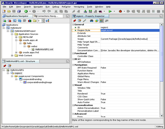 In OA Framework we use the concept of a region: *A web page requires a root region *Regions can be nested *Widgets (fields, buttons, images, etc) appear in a region * Properties control the appearance of widgets |