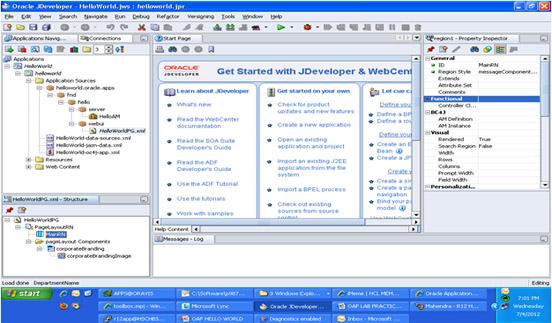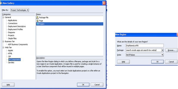| I use TEMPLATE.fmb as the starting point for any custom Apps forms. TEMPLATE.fmb contains references to libraries, property settings, and menus that will help make custom forms look-and-feel like Oracle-provided forms. | OA Framework is a development and deployment platform presented through JDeveloper. The seeded objects and settings give custom web pages the same look-and-feel as Oracle-provided web pages |