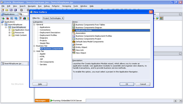 Right Click on Employee(is nothinh but your .jpr name in jdeveloper) > New > ADF Business Components > Application Module